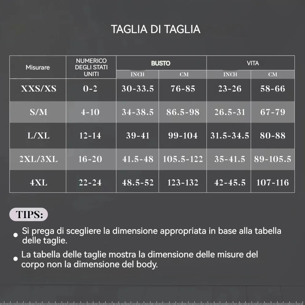 Gli articoli devono essere restituiti nella confezione originale e avere l’etichetta.