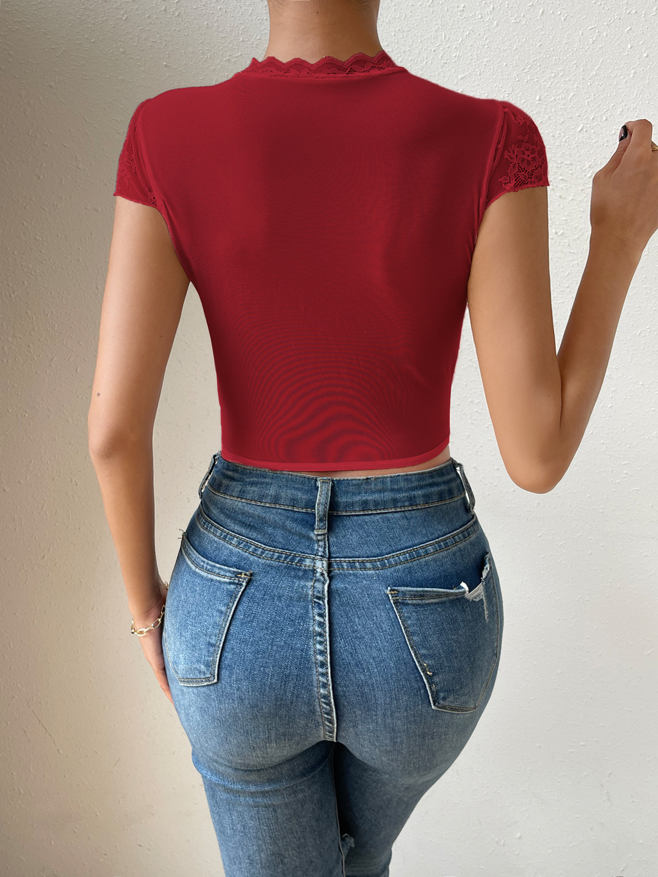 Top aderente con ferretto in pizzo floreale con scollo tondo e vestibilità a spina di pesce